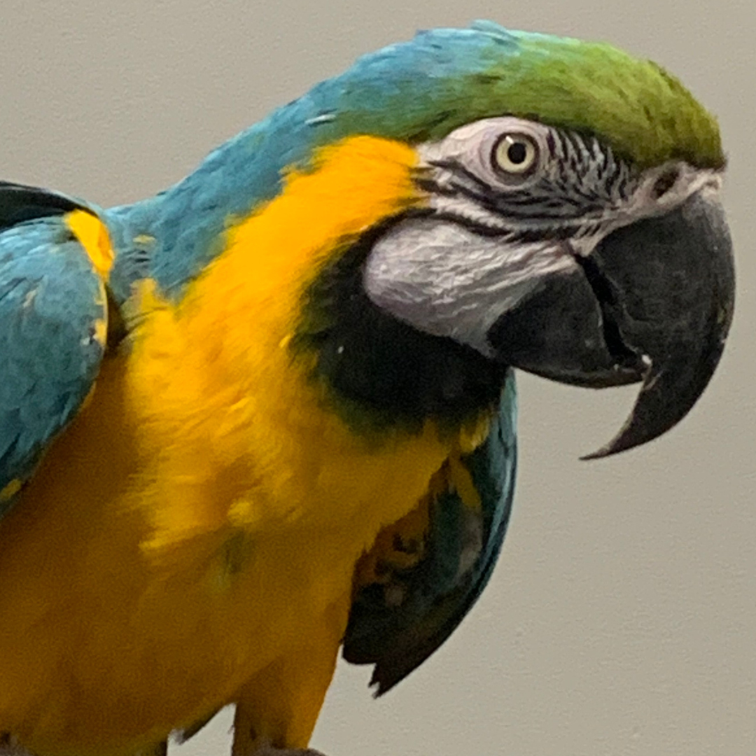 - Loves to say “Hello,” “Pretty Bird,” and “Bye Bye”—and even calls out for Kevin, Kaleideum’s Director of Animal Care.