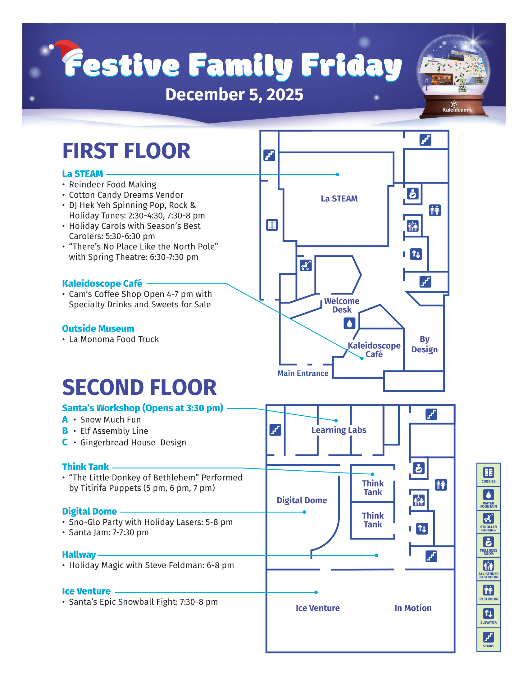 Put the festive in your Friday with an afternoon and evening full of joyful, memory-making moments at Kaleideum! The museum will be buzzing with music, laughter, creativity, and holiday cheer. Whether you stay for a few hours or enjoy the full six, you’ll find something magical waiting around every corner.