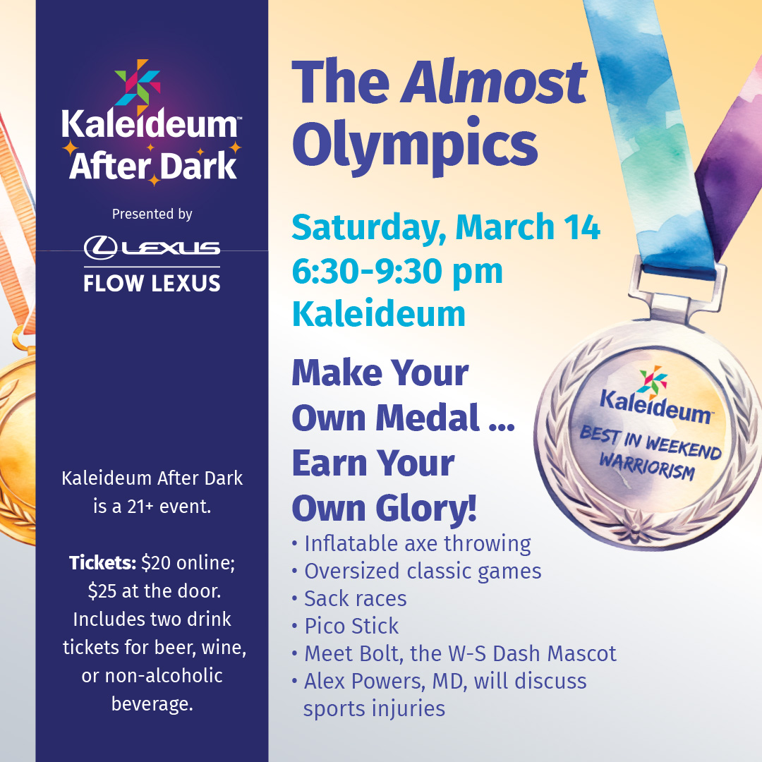 Channel your inner almost-athlete at the March Kaleideum After Dark—where friendly competition, oversized games, and playful challenges take over the museum for a night of adults-only fun.