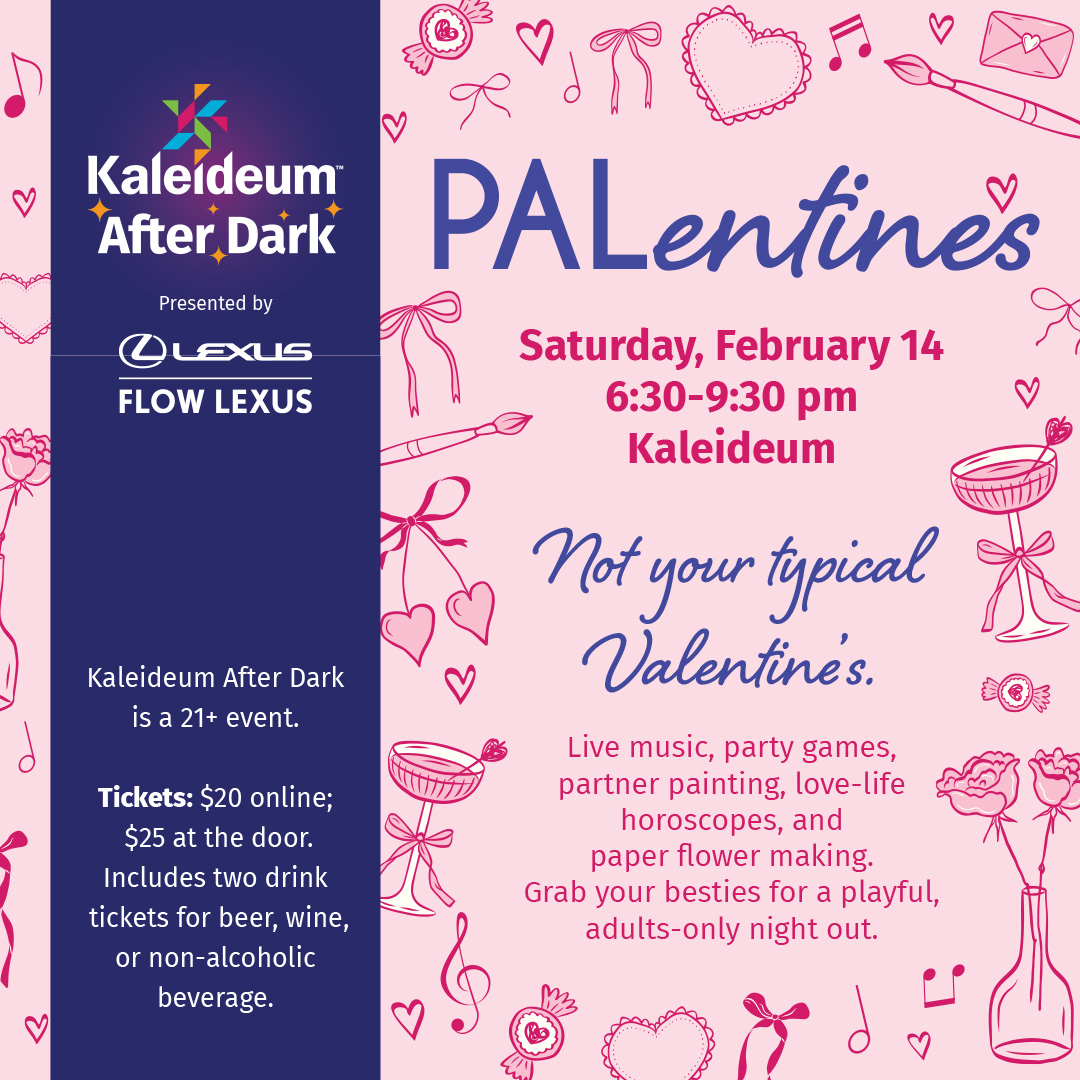 Who says Valentine’s Day is just for couples? Grab your besties, your favorite plus-one, or come ready to make new friends at Kaleideum After Dark: “PAL”entines—a playful, adults-only evening celebrating friendship, creativity, and connection. Set the vibe with live music in La STEAM and warm up at the adult hot chocolate bar. Test how well […] Join us for a traditional planetarium show to explore the stars and planets with our expert guides. Each show is a unique voyage of discovery. The Digital Dome is located on the 2nd floor of Kaleideum. Tickets $3/members; $5 non-members
